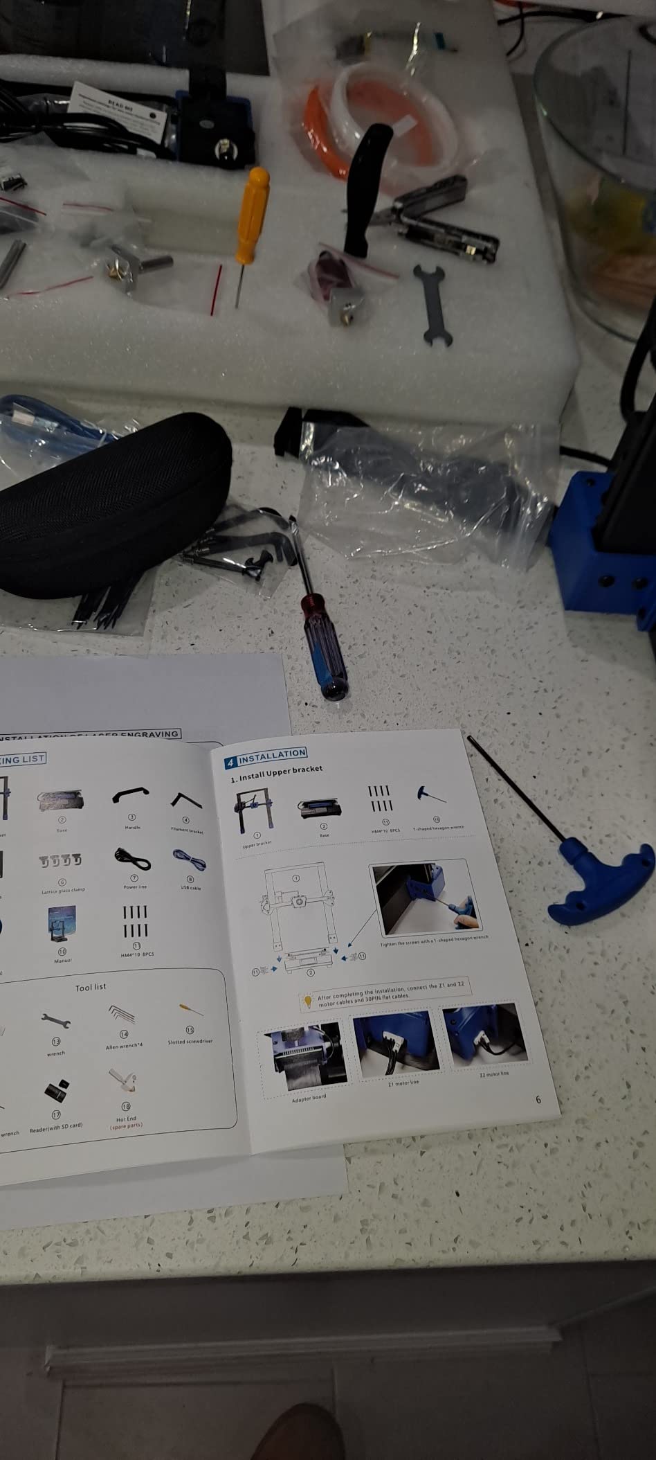 Product Quality.upon opening the box and looking at each part of the printer, you can tell that Tronxy have made sure that the XY-3 SE is sturdy and robust with alloy material which makes it lighter than most and for those that didn't understand why they supply an handle for the top, well this becomes obvious during the build of it and easy to move without grabbing hold of the wrong thing and potentially damaging something on other printers.Components and Accessories.well what can I say here, I am impressed with the amount of parts you get, including the tools and the only negative I have is the fact that you are only given small quantities of filament and I would have preferred a full spool , however this is a very minor issue, seeing that i am not new to 3D printing and I have plenty already.In the box you have the duel extruder, two tubes, tie wraps, 3 packs of filament samples, flat head screw driver, various sized Alan keys and scraper etc.Single extrusion test.Once I had built the printer, which took me around 30 minutes on my own, and by adding the top handle first, did make it easier to lift and keep the main section in place, I did a Auto level check and the results informed me that I needed to make some minor adjustments and as soon as I had i commenced printing, you will see in the attached video that I started my printing of the T800 bust which turned out pretty good as you will see and the only slight issue I had was the first layers in certain sections had lifted, but the details of the print was very good.Duel extrusion test.Initially I did struggle to get this to work as I could not get it to print from the second extruder, however I think this was human error and I soon figured out what to do, you have to make sure that one of the extruders filament is extracted from the end of the extruder by about 20-30mm because it can obviously only start to print with one filament first, so if you have both filaments inside the nozzle, then they wont move, well that's what I think happened to me.As you will see with the pictures of the Ying and Yang print, the first one didn't print too well and did not print even and again this was my fault, but after a few tweaks here and there, I soon got it to look much better with it being at the same height all the way around, but again I am still getting slight lift from certain areas of the first layers, but once I had finely adjusted everything it is now printing great.laser.fitting the laser attachment was fairly easy after I read the instructions and I did start laser printing, but unfortunately I haven't mastered this side of it yet and need more time to learn this side of things as I have not done this kind of thing before, so cannot tell you much else apart from the fact that its a great idea and I have not seen a printer that does all 3 and for the price it is very good to have 3 processes in one.ConclusionI would highly recommend this printer to anyone, especially seasoned 3d printer guys and girls out there who have more experience in setting up and I now have two tronxy printers, but must admit this version is better and has the Bowden extruder with duel fans, oh and when printing the printing is very quite and the only thing you can actually hear is the two fans, but overall I love this printer.My next project is to learn how to laser etch and your never to old to learn something new I say.hope you all have a good time with it too :)Thanks for reading.Mark