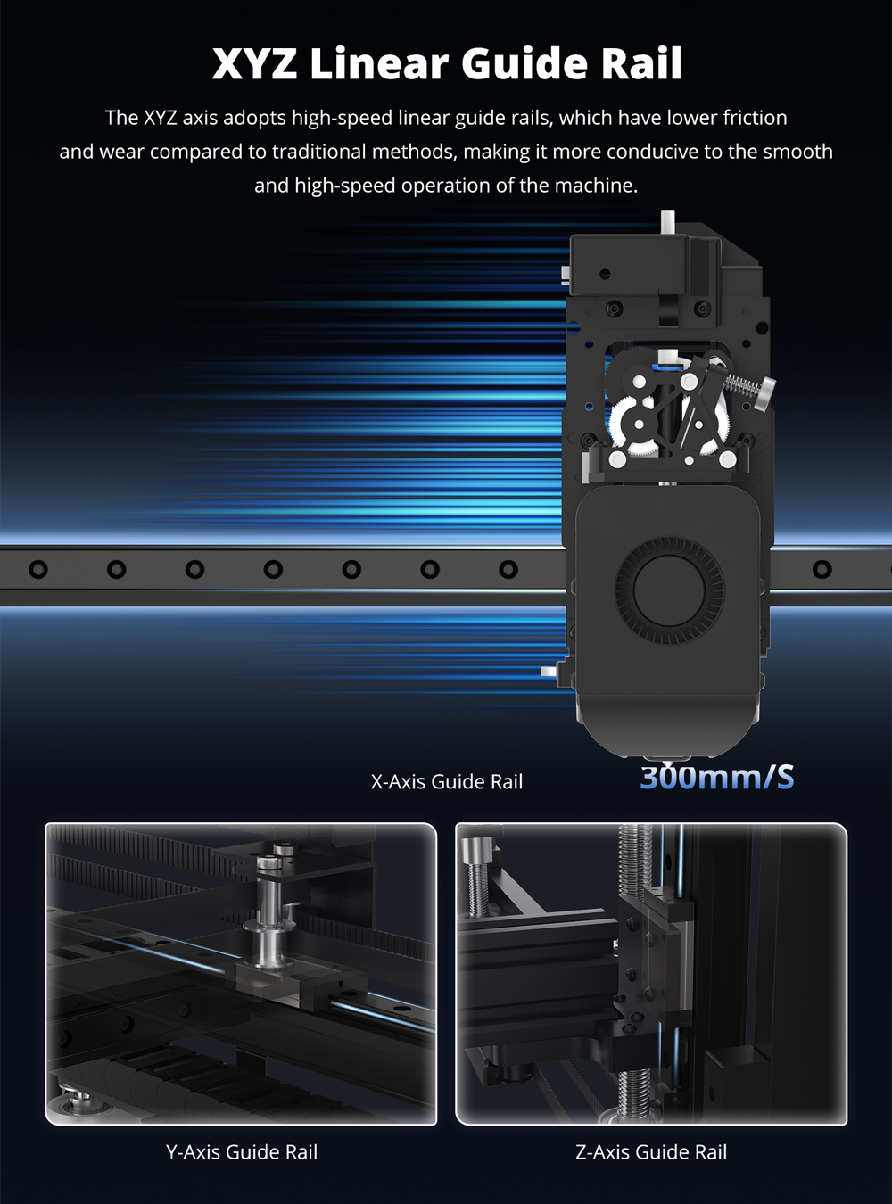 - All-metal OSG external dual-axis metal guide rails for X-axis, Y-axis,